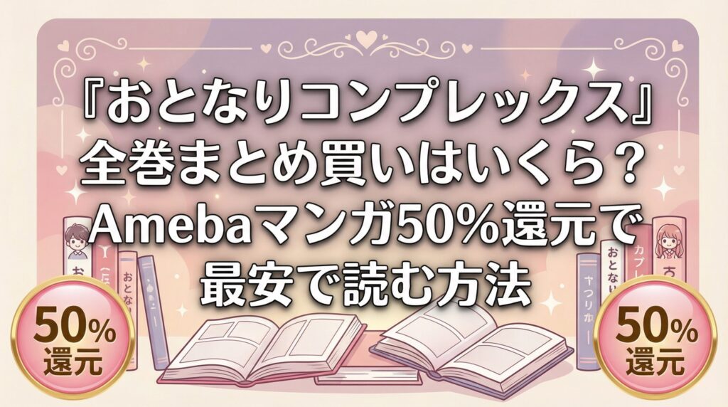 『おとなりコンプレックス』は全巻まとめ買いできる?Amebaマンガの50%還元でお得に読む方法【2026年3月最新】 『おとなりコンプレックス』は、野々村朔先生による累計70万部突破の大人気ラブコメディです。本編全5巻+電子限定の卒業編を含む全6巻が、Ame... -