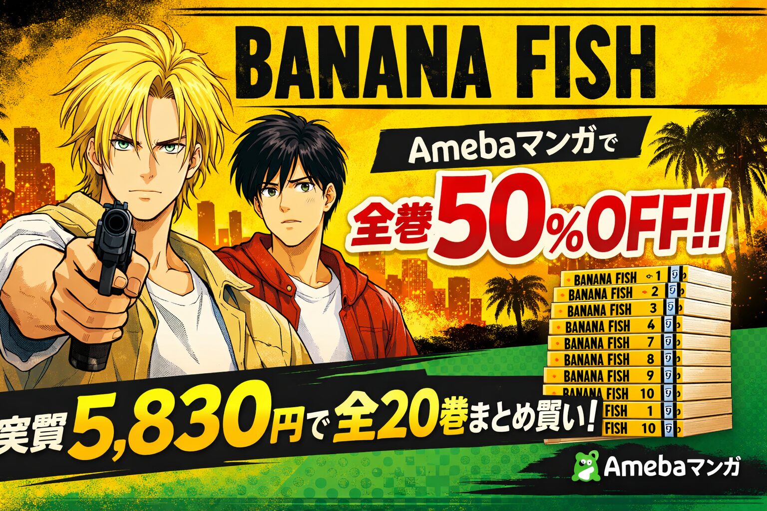 『BANANA FISH』全巻まとめ買いはいくら?Amebaマンガの50%還元で最安で読む方法【2026年3月最新】