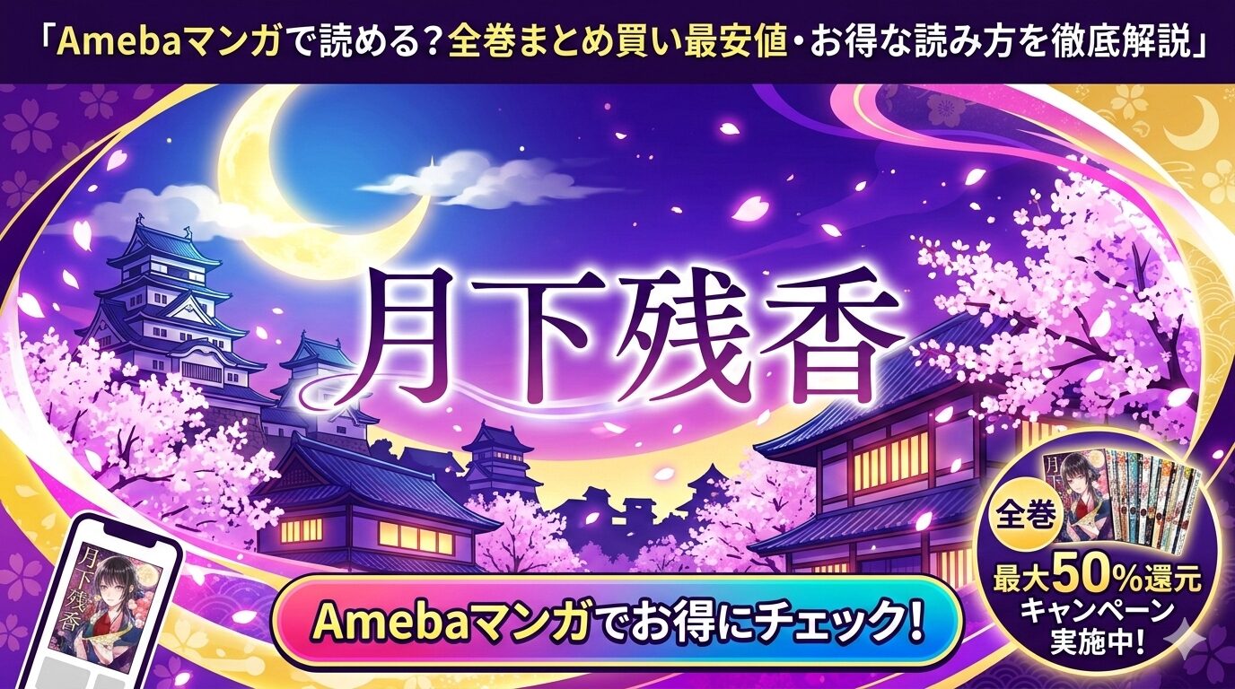 『月下残香』を全巻まとめ買いしたいとお考えの方へ。結論からお伝えすると、Amebaマンガの新規登録キャンペーン「100冊まで最大50%即時還元」を活用すれば、最もお得にまとめ買いできる可能性があります。本記事では、配信状況や口コミ、お得な購入方法を詳しく解説します。