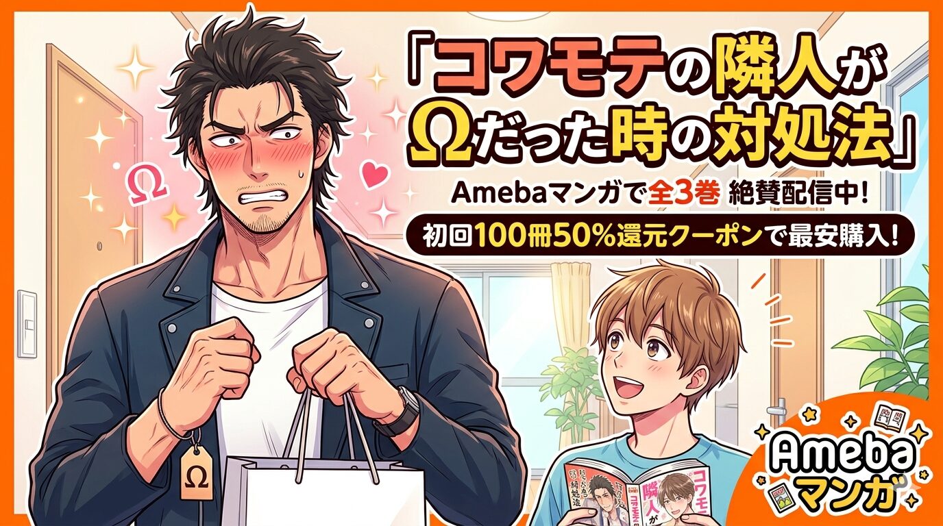 「コワモテの隣人がΩだった時の対処法」全巻まとめ買いはいくら?Amebaマンガの50%還元で最安で読む方法【2026年2月最新】