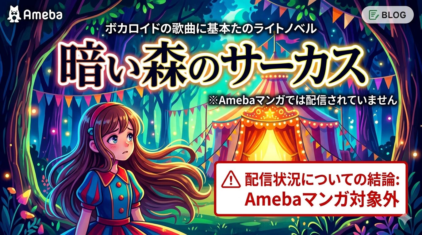 「暗い森のサーカス」をAmebaマンガでまとめ買いしたいと考えている方へ、先にお伝えしなければならない重要な事実があります。本作はBL漫画ではなく、ボーカロイド楽曲のノベライズ(小説)作品です。Amebaマンガでの配信は確認できませんでした。