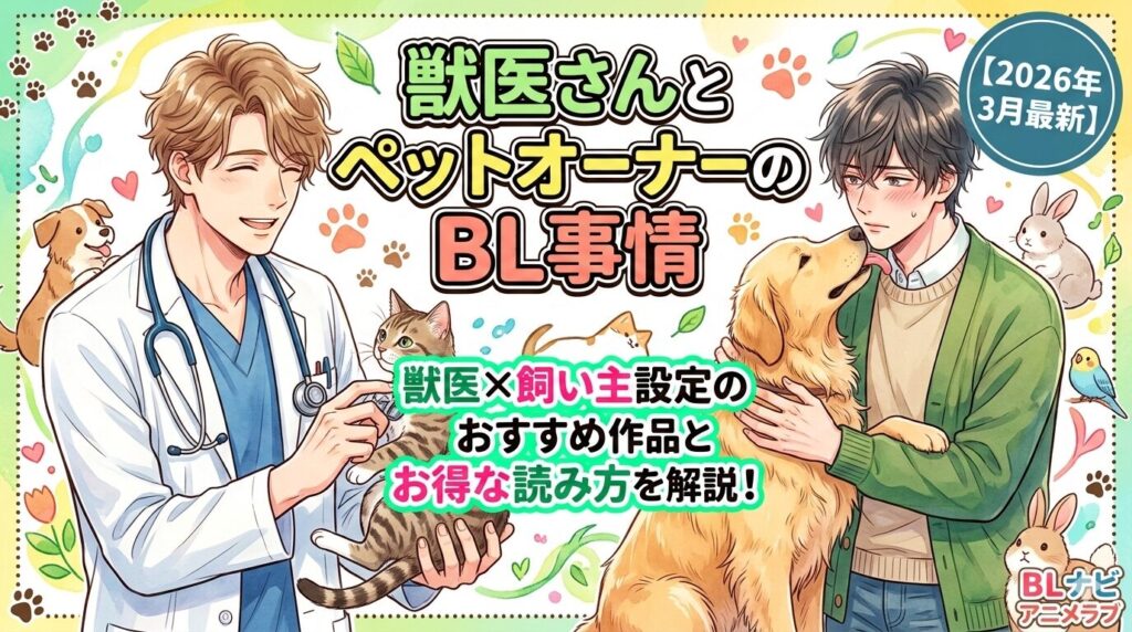 「獣医さんとペットオーナーのBL事情」で検索して出てくるBL作品は?獣医×飼い主設定のおすすめ作品とお得な読み方を徹底解説【2026年3月最新】 「獣医さんとペットオーナーのBL事情」で検索しているあなたへ。結論から言うと、このタイトルそのものの商業... -