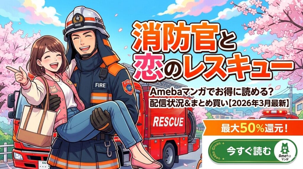 『消防官と恋のレスキュー』はAmebaマンガで読める?配信状況とお得なまとめ買い方法を徹底調査【2026年3月最新】 「消防官と恋のレスキュー」をお得にまとめ買いしたい方へ。当サイトが2026年3月2日時点の配信状況を徹底調査しました。結論として、Ameba... -