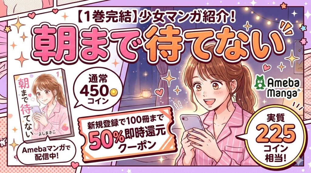 「朝まで待てない」全巻まとめ買いはいくら?Amebaマンガの50%還元で最安で読む方法【2026年2月最新】