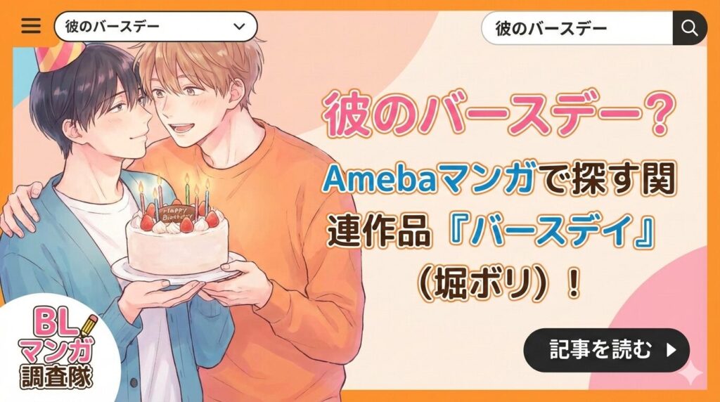 「彼のバースデー」というキーワードでBLマンガを探している方に向けて、Amebaマンガでの配信状況を徹底的に調査しました。結論として、「彼のバースデー」という単独タイトルのBLマンガ作品は2026年2月現在確認できませんでしたが、非常に近いタイトル・...