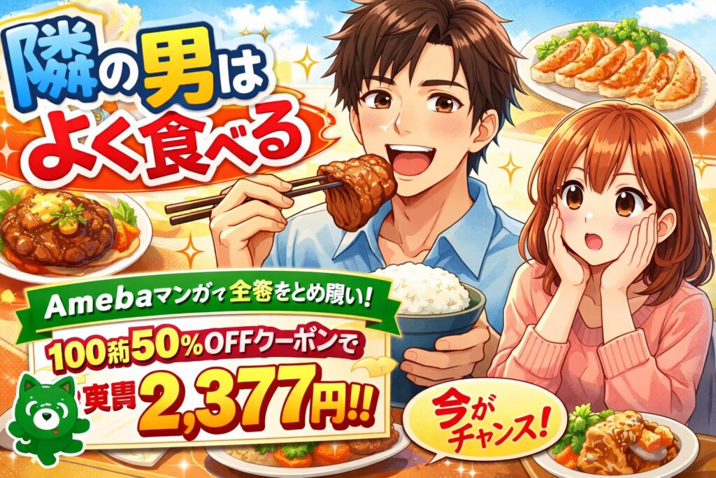 「隣の男はよく食べる」全巻まとめ買いはいくら?Amebaマンガの50%還元で最安で読む方法【2026年2月最新】