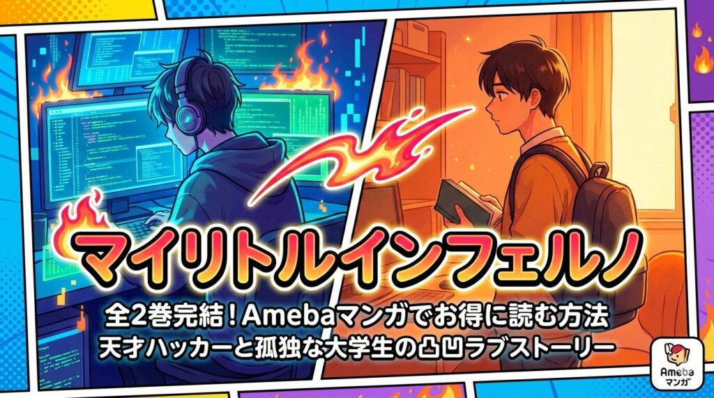 朝田ねむい先生の人気BL漫画『マイリトルインフェルノ』は全2巻完結済みの作品です。結論から言うと、Amebaマンガの初回限定100冊50%即時還元クーポンを使えば、全巻を実質約715円で購入できます。天才ハッカーと孤独な大学生の凸凹ラブストーリーを、最も... -