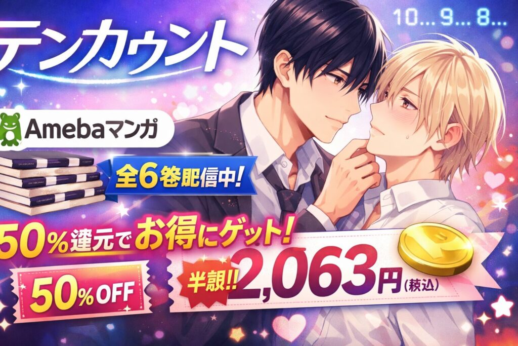『テンカウント』全6巻はAmebaマンガで配信中です。新規登録時の100冊まで50%即時還元クーポンを使えば、通常約4,125円(税込)の全巻セットが実質約2,063円で購入できます。2026年2月16日時点の最新情報をもとに、最安値で読む方法と作品の魅力を徹底解説...
