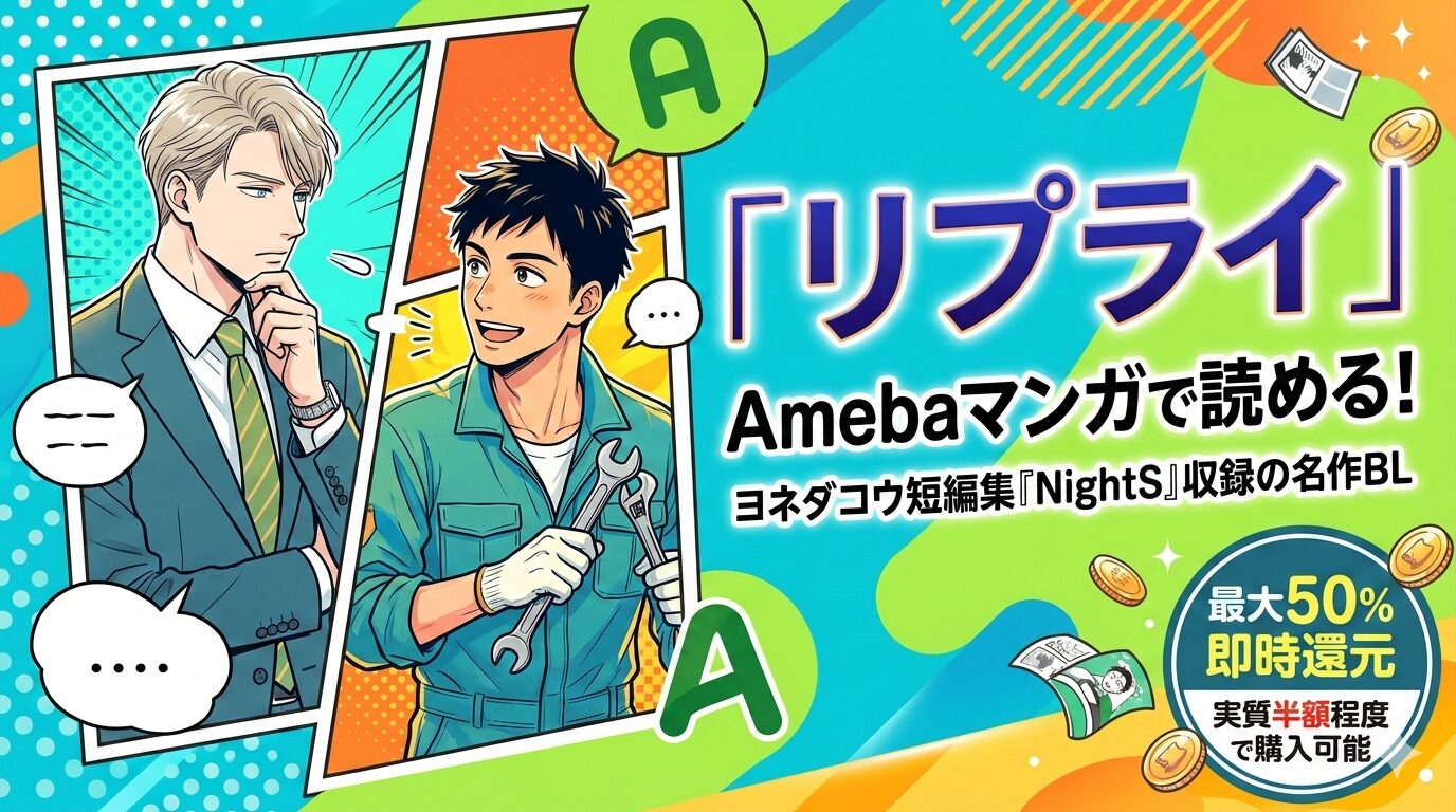「リプライ」はAmebaマンガで読める?ヨネダコウ短編集『NightS』収録の名作BLをお得に読む方法を徹底解説【2026年3月最新】
